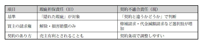 旧:瑕疵担保責任 → 新:契約不適合責任